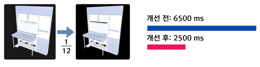 문제: AI 생성 3D 모델(.glb)의 평균 크기가 1.3MB로, Amazon S3에서 모델을 불러오는 과정이 지연되어 시뮬레이터 초기 로딩에 약 6초가 소요되었습니다.