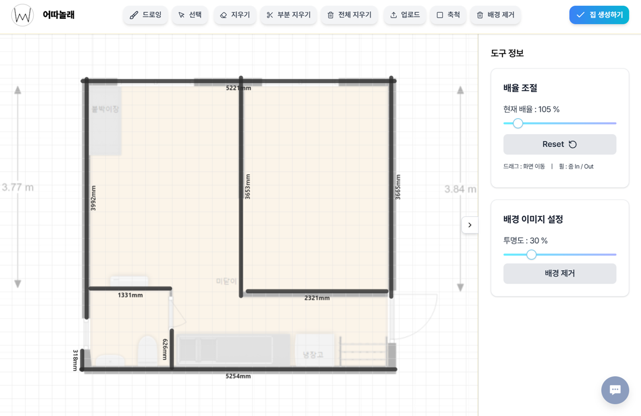문제: 사용자가 수동으로 본인의 집의 벽을 확인해서 도면을 그리게끔 하는 것은 매우 비효율적입니다.